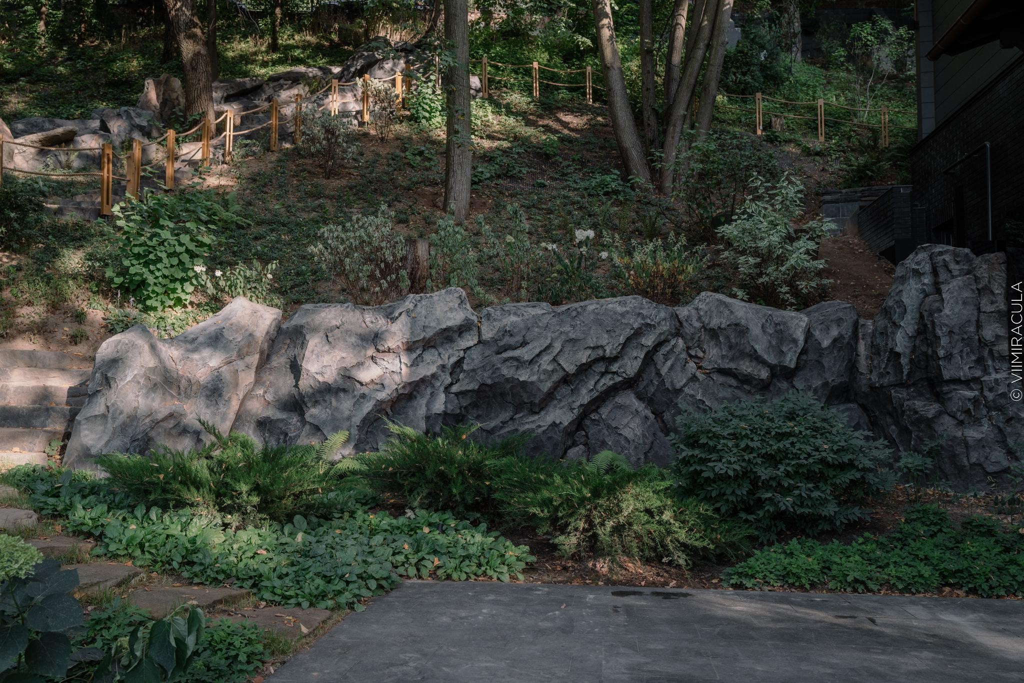 В студии «Семь чудес света» применяют этот же принцип не только к газонам, но и к «техническим» зонам сада. Любой участок содержит объекты, которые обычно пытаются спрятать: люки, вентиляционные выходы, хозяйственные постройки. Но если подойти к ним творчески, они становятся частью природной композиции. Студия декорирует хозяйственные постройки и коммуникации под природные объекты, превращая недостатки в уникальные арт-объекты — будь то имитация старого пня, или скала в виде подпорной стены.