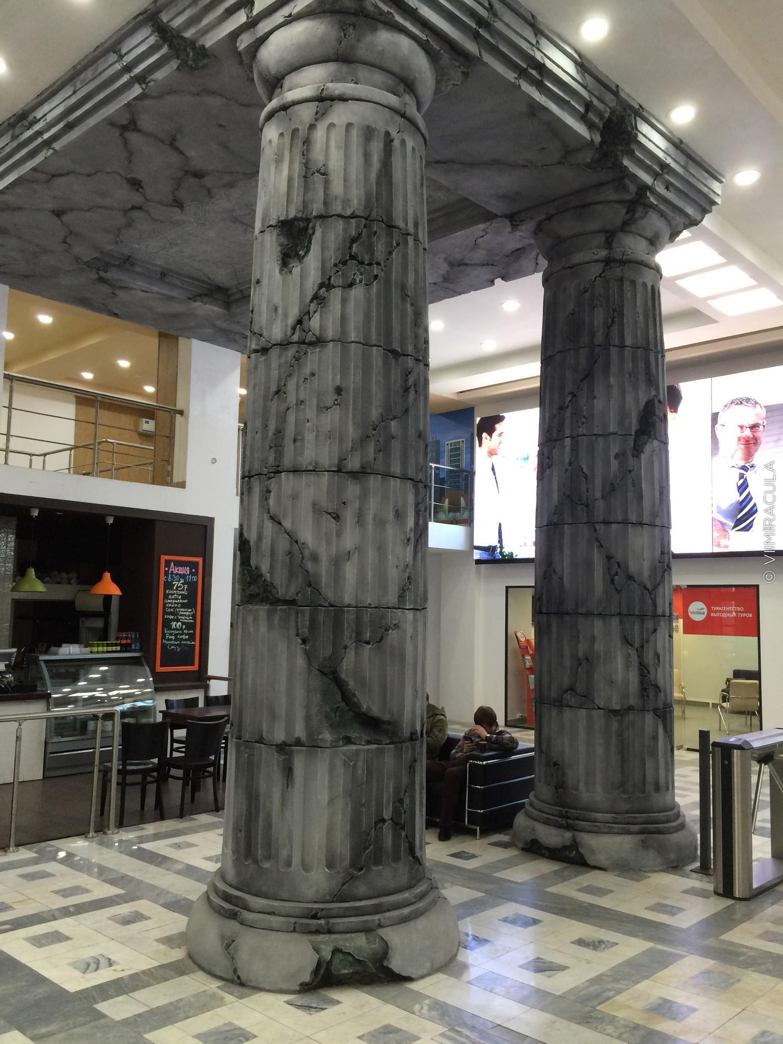 Греческие колонны из арт-бетона в торговом центре, Москва. Студия «Семь чудес света». viimiracula.ru