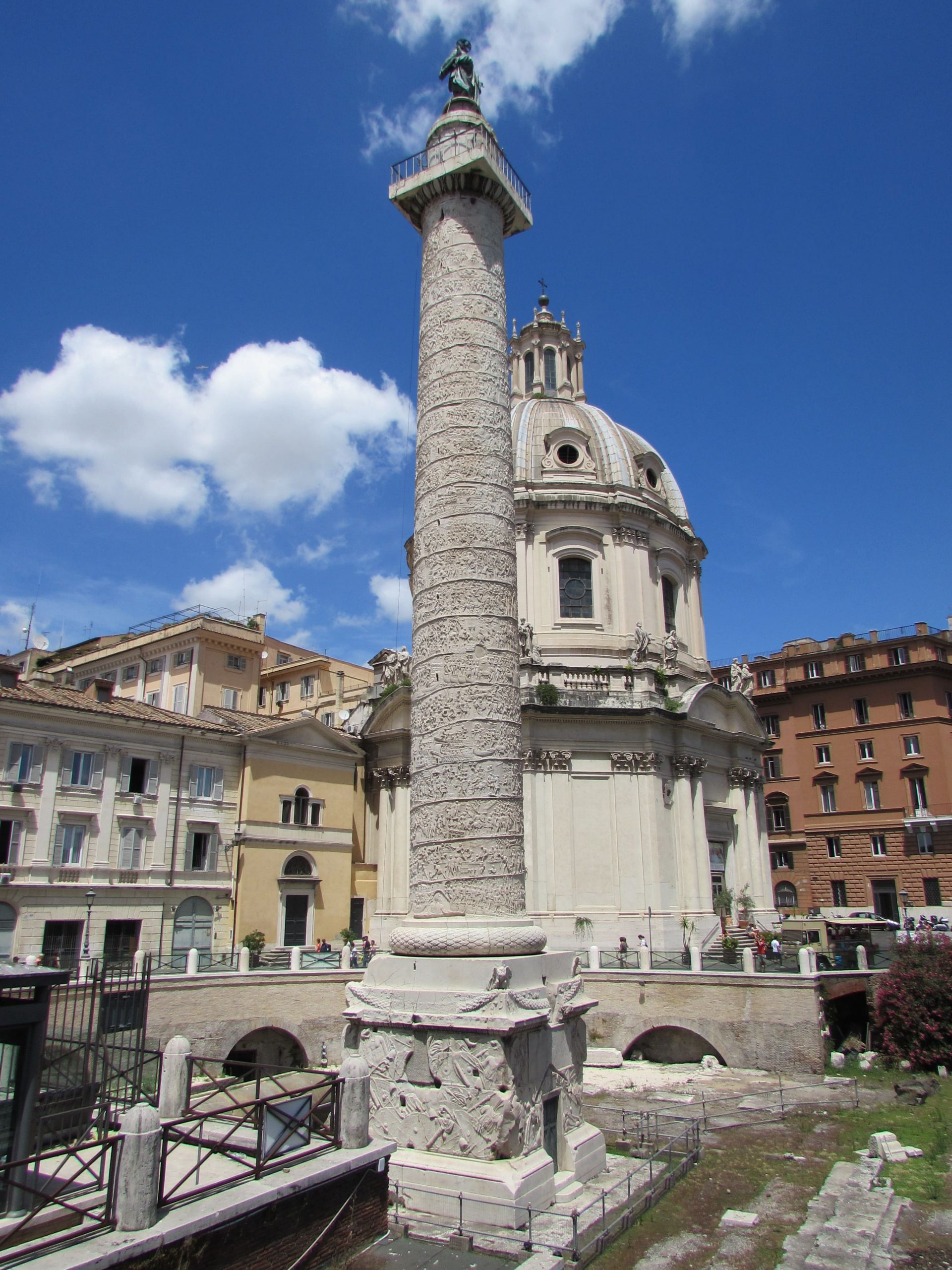 В Древнем Риме особый статус приобретают вотивные (посвятительные) колонны, установленные в честь исторических событий. Самая знаменитая – Колонна Траяна, воздвигнутая 113 году н. э. по проекту архитектора Аполлодора Дамасского в честь побед императора Траяна над даками. Высота колонны – 38 м, диаметр – 3,6 м, выполнена из 20 блоков каррарского мрамора. Ствол колонны 23 раза огибает лента с военными сценами. Поражает детализация изображений 2500 человеческих фигур в 155 сценах. Внутри колонны расположена винтовая лестница со 185 ступенями, ведущая на капитель.