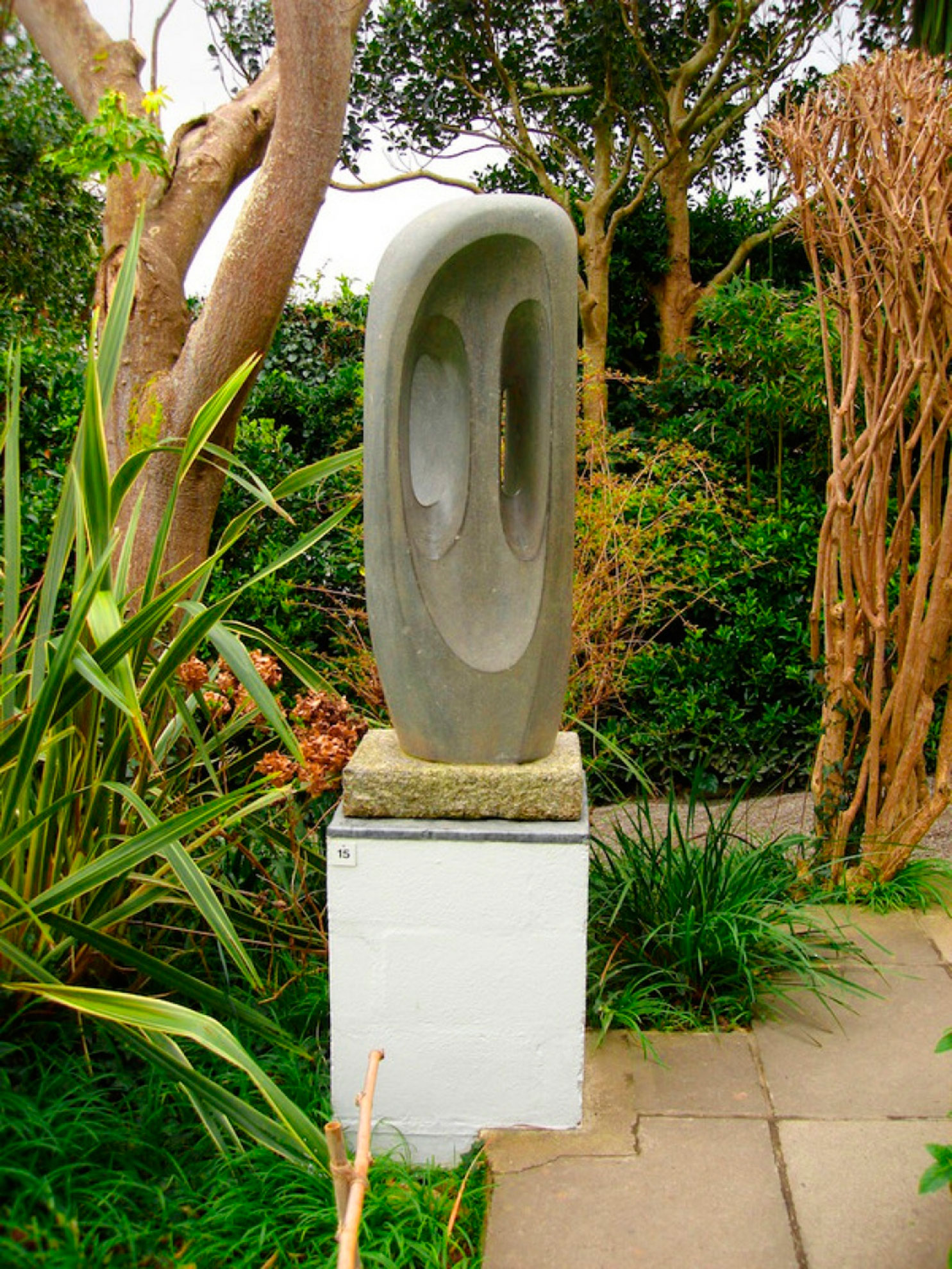Сад скульптур Барбары Хепуорт – пример органичной интеграции искусства и живой природы. Он расположен в приморском городке Сент-Айвз, Англия. Барбара Хепуорт всю жизнь занималась абстрактным искусством и будучи уже известным скульптором в 1949 г. заложила сад, где разместила свои работы. Она не руководствовалась принципами ландшафтного дизайна, для неё было важно какое эмоциональное воздействие произведут её работы. Растения подбирались Барбарой по принципу наиболее удачного фона для её произведений. Субтропический климат южной Англии позволил наполнить сад множеством разнообразных насаждений: пальмы, реликтовые гинкго билоба, декоративные вишни, метасеквойи, камелии, мирт, герани, медуница, обилие почвопокровных растений.