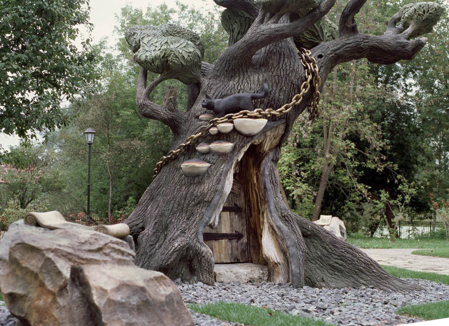 Для маскировки инженерных сооружений и бытовых построек лучше всего подходит архитектурный бетон. Скульптуры из арт-бетона полые внутри, поэтому в них очень легко можно спрятать любые коммуникации. Если коммуникации требуют периодической профилактики или замены, то в скульптуре предусматриваются скрытые двери или люки.