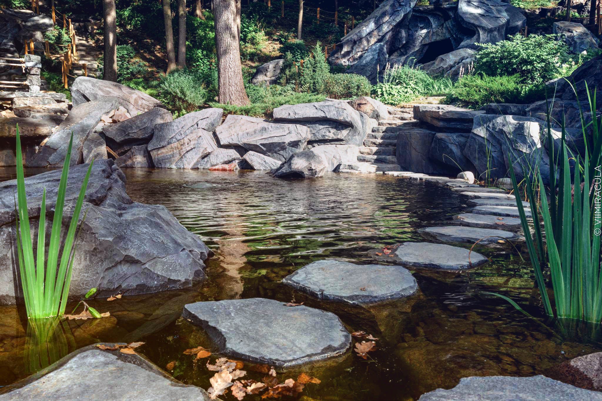 Грот с водопадом, пруд, дорожки. Студия арт-бетона «Семь чудес света».