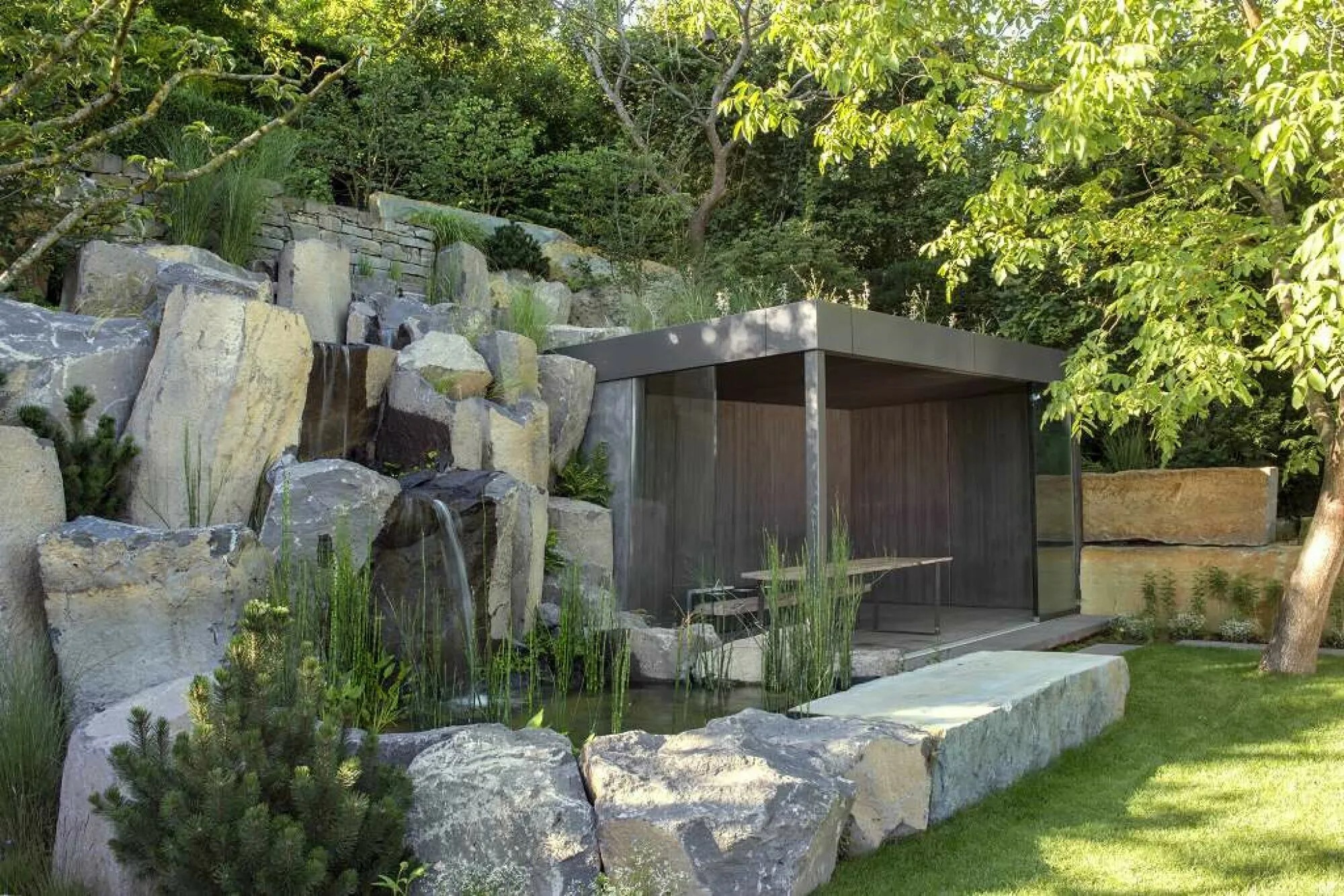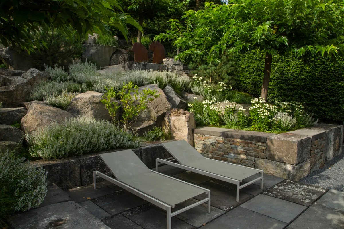В основе сада от Петера Берга лежат три элемента: природный камень, растения и вода.
