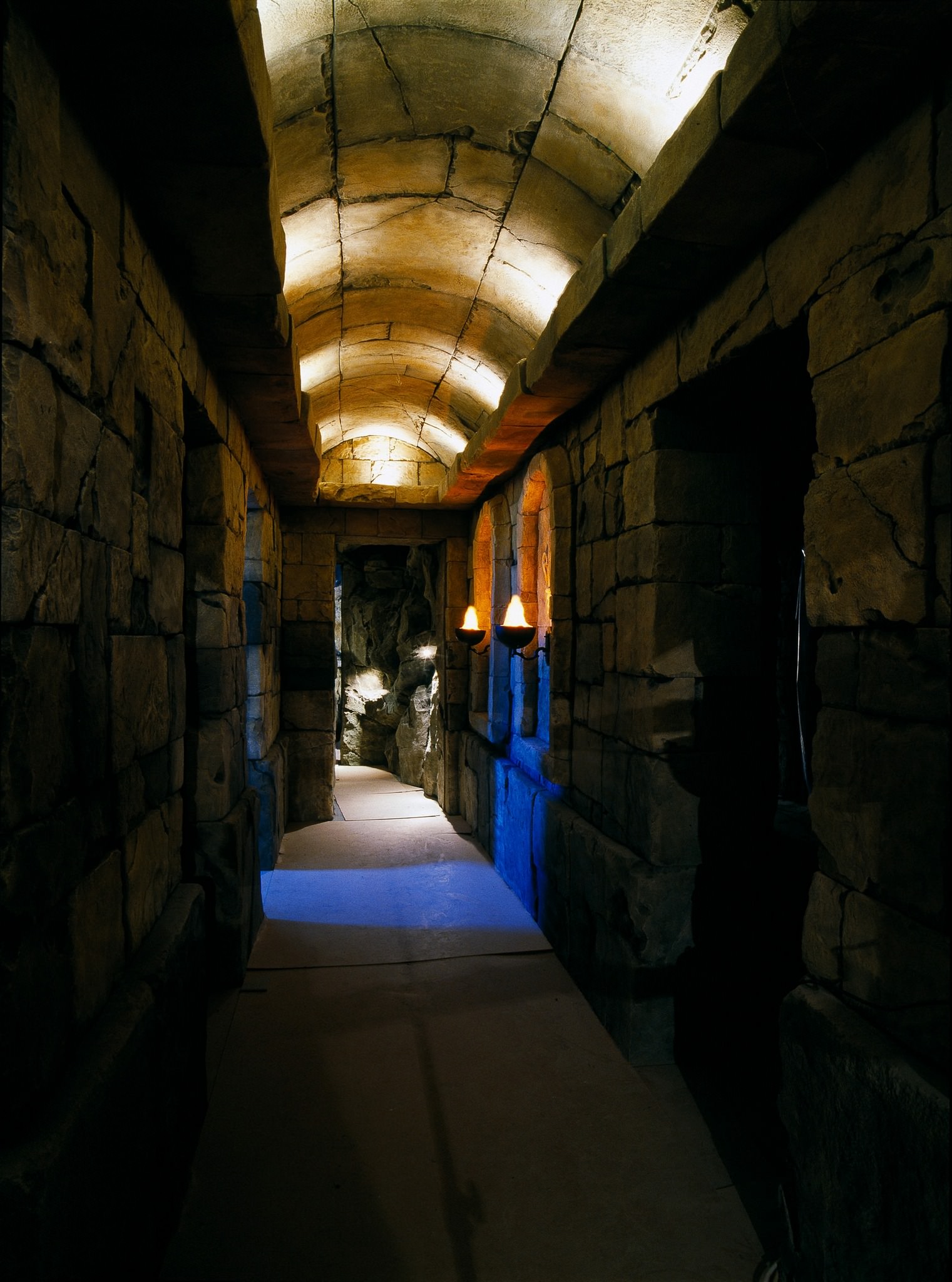 Сводчатый потолок, грубая каменная кладка, горящие факелы, размещенные на стенах, – коридор пропитан атмосферой древности и благородства. Флорентийские лилии, узор которых подчеркивает пламя факелов, использовали в своих гербах многие европейские аристократы, включая знаменитых Медичи.