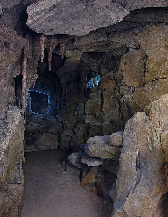 Пещера из архитектурного бетона в интерьере выглядит весьма живописно