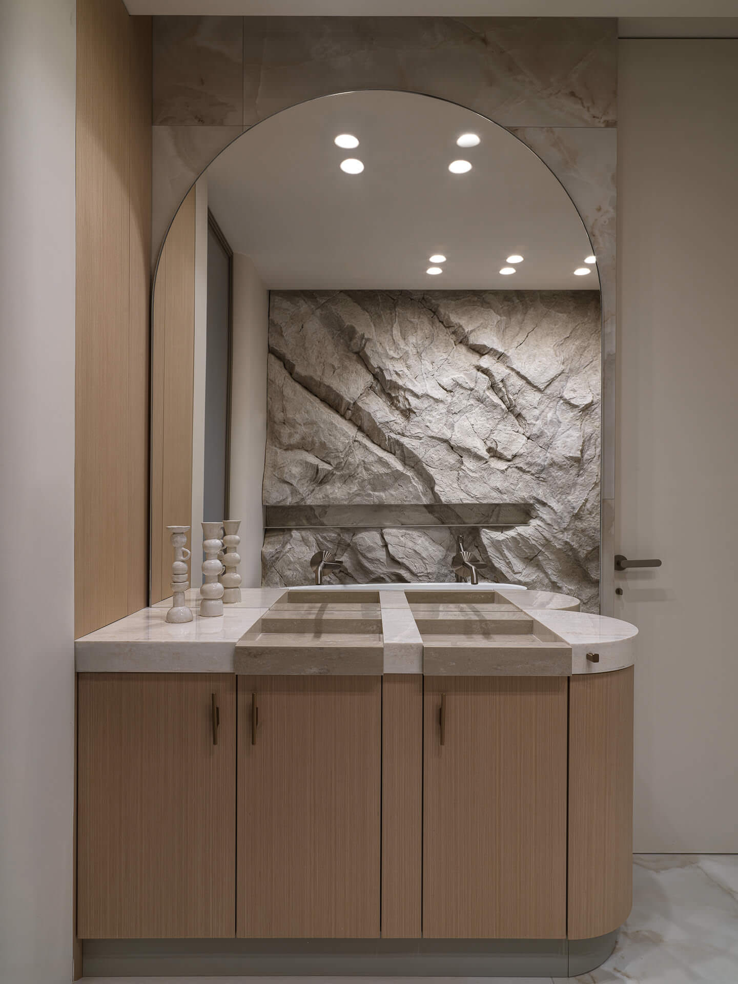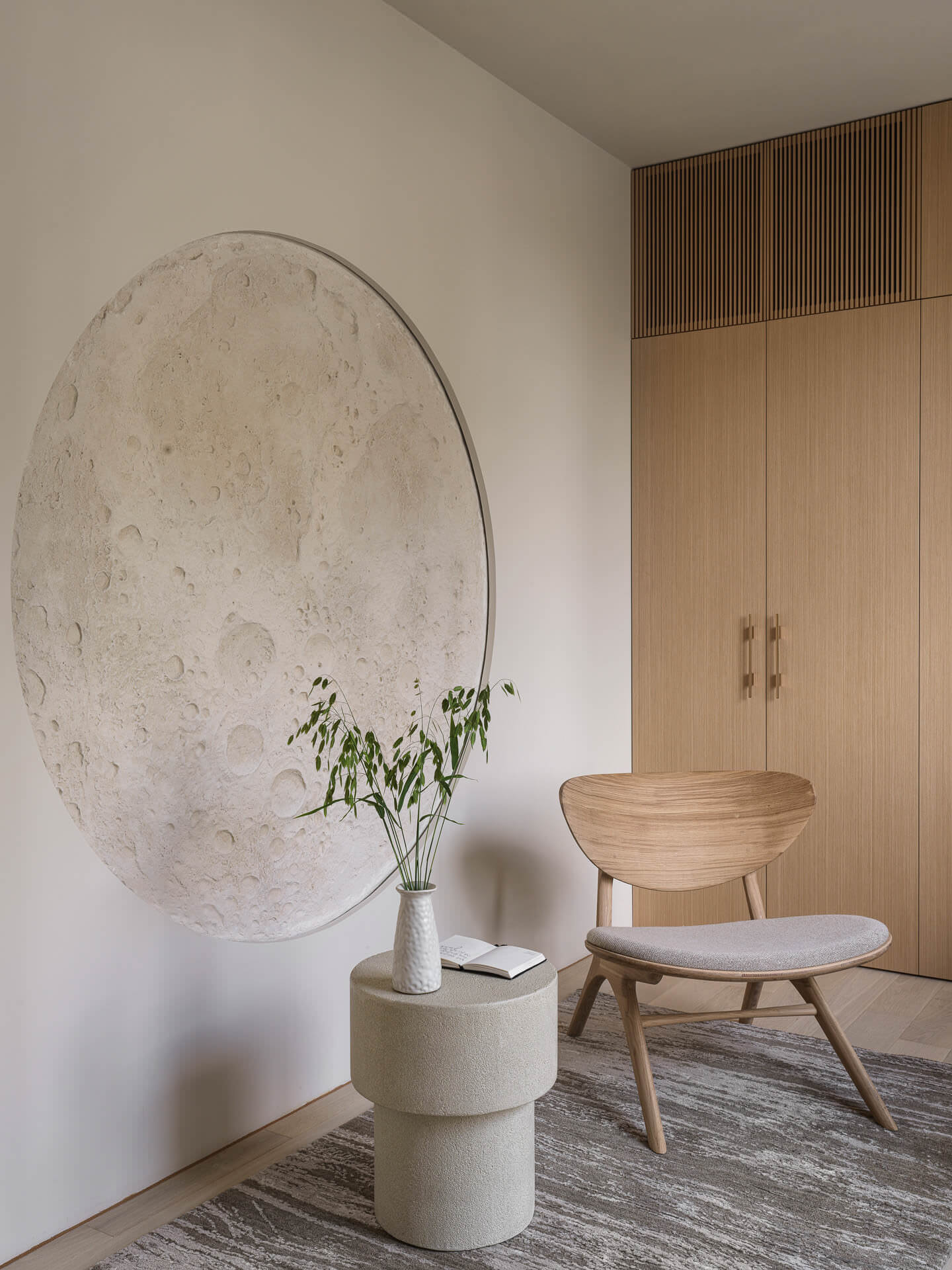 Этот проект — наглядный пример, как скульптура в интерьере становится стилевой доминантой. Барельеф «Луна» в музыкальном салоне и горельеф «Скала» в спа-зоне. Они разные по рельефу и настроению, но объединены одной философией: гармонией с природой.